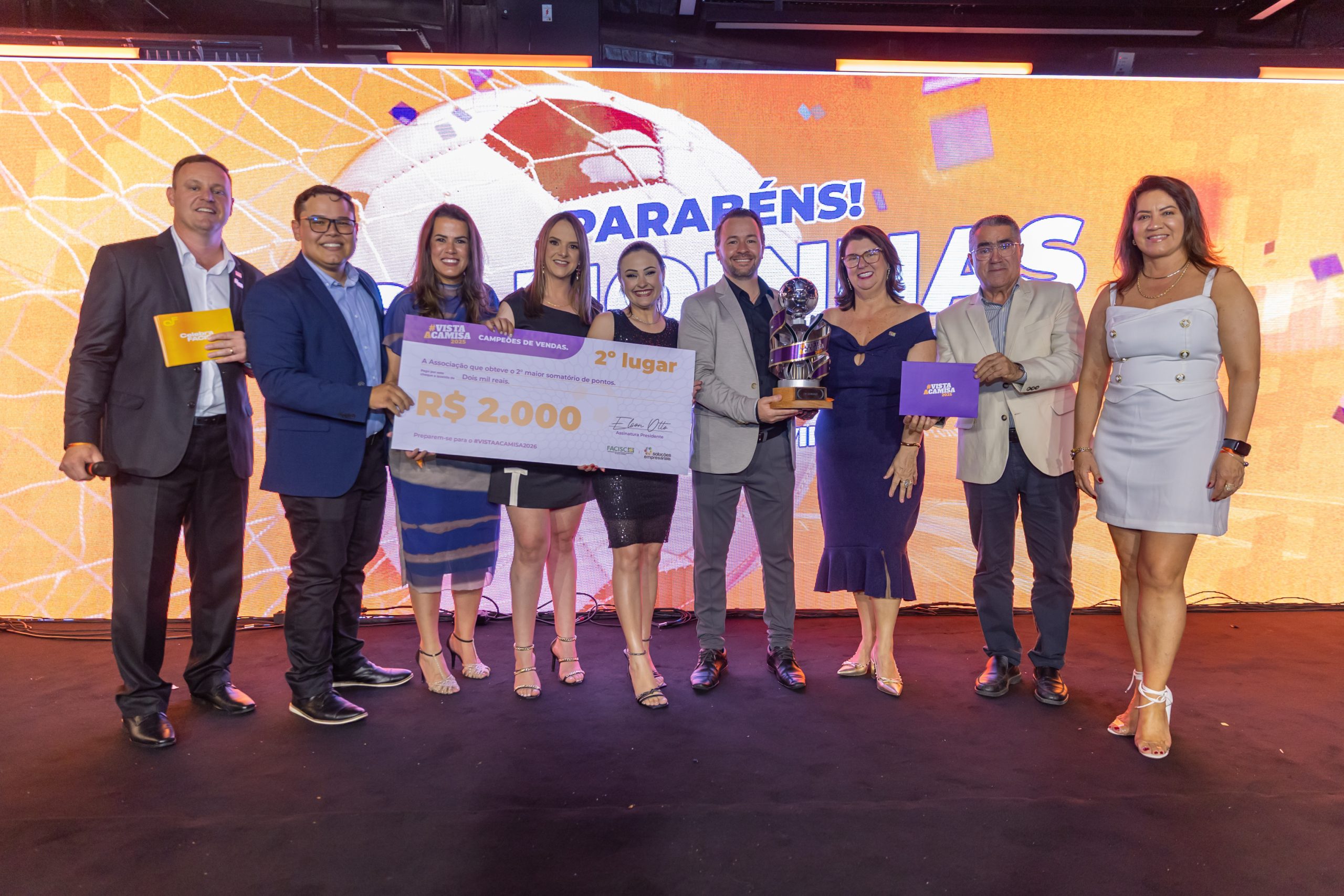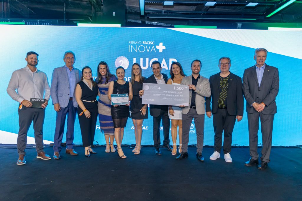A segunda conquista da noite veio com o 2º lugar no Prêmio Vista a Camisa, que reconhece as associações com maior crescimento na comercialização de soluções empresariais. A honraria foi entregue pela Vice-Presidente da FACISC, Rita de Cássia Conti, ao presidente Felipe Matheus Piermann.